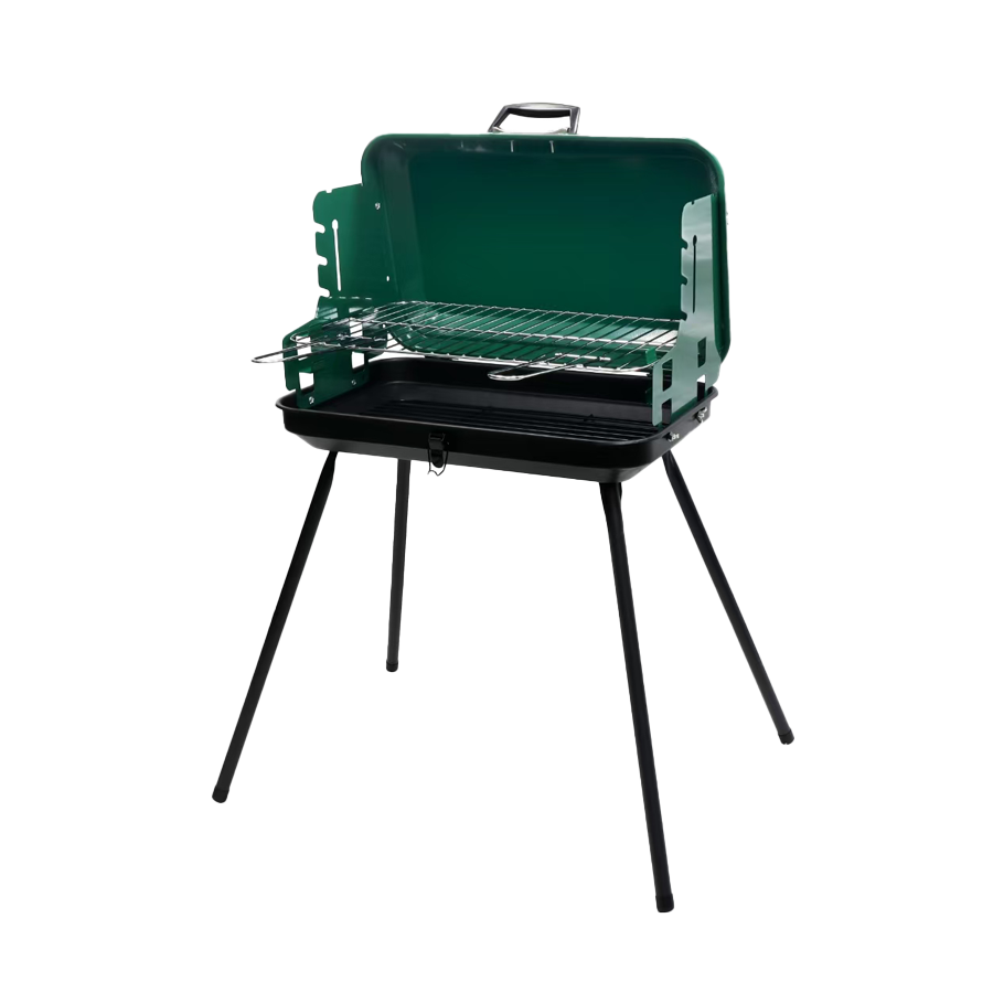 Pratico e funzionale, il nuovo barbecue a valigetta in acciaio verniciato è pensato per il campeggio e le gite all’aperto. Dotato di coperchio richiudibile, griglia in acciaio cromato regolabile in due posizioni e manici pieghevoli, garantisce massima comodità e sicurezza.